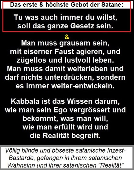 Die satanischen* Inzestbastarde** haben die Wörter “Moral, Ethik" (und ähnliche Worte) irgendwo gehört und gelesen, waren aber nie in der Lage, die Bedeutung solcher Worte zu verstehen und fühlen, weil es in ihren primitiven und satanischen Seelen & Bewusstseinen keinen Platz und keine Möglichkeit dafür gibt. Deshalb benutzen sie solche Wörter in so absurden Zusammenhängen.