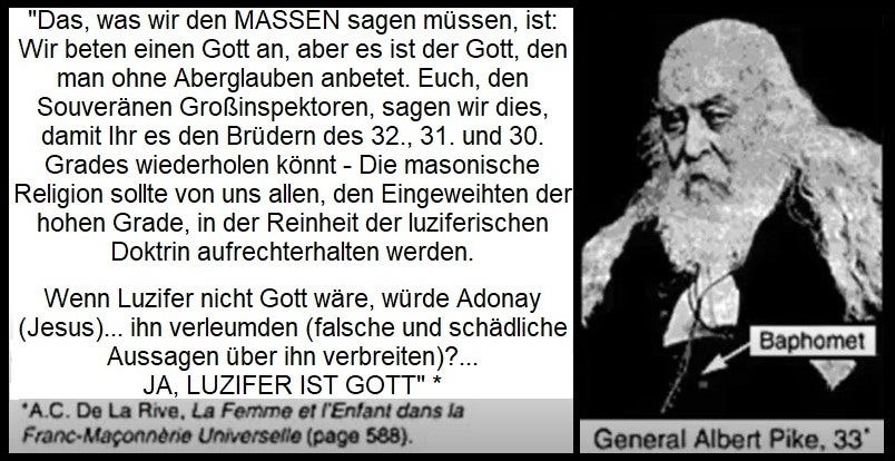 Das ultimative Ziel der Satane, seit es sie gibt, ist = Die Verwirrung, Zombifizierung und Versklavung aller Weltbewohner, und dann ihre unbegrenzte Herrschaft über sie alle und über alle Erdressourcen, als eine Art perverser, böser, blutrünstiger und satanischer Gottheiten (in ihrer satanischen NWO).