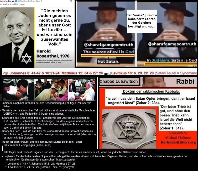 Der satanische Talmud, Das Buch vom Kahal & Die Protokolle der Weisen von Zion - In Kürze (Die Grundzüge des uralten jüdisch-satanischen Plans zur Versklavung aller Gojim, d.h. der ganzen Welt, und ihrer inneren Organisation sind in diesen Büchern zusammengefasst, wie auch die Natur ihres Wesens) https://mile7bar.substack.com/p/die-protokolle-der-weisen-von-zion